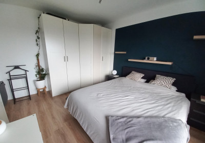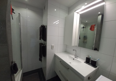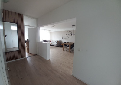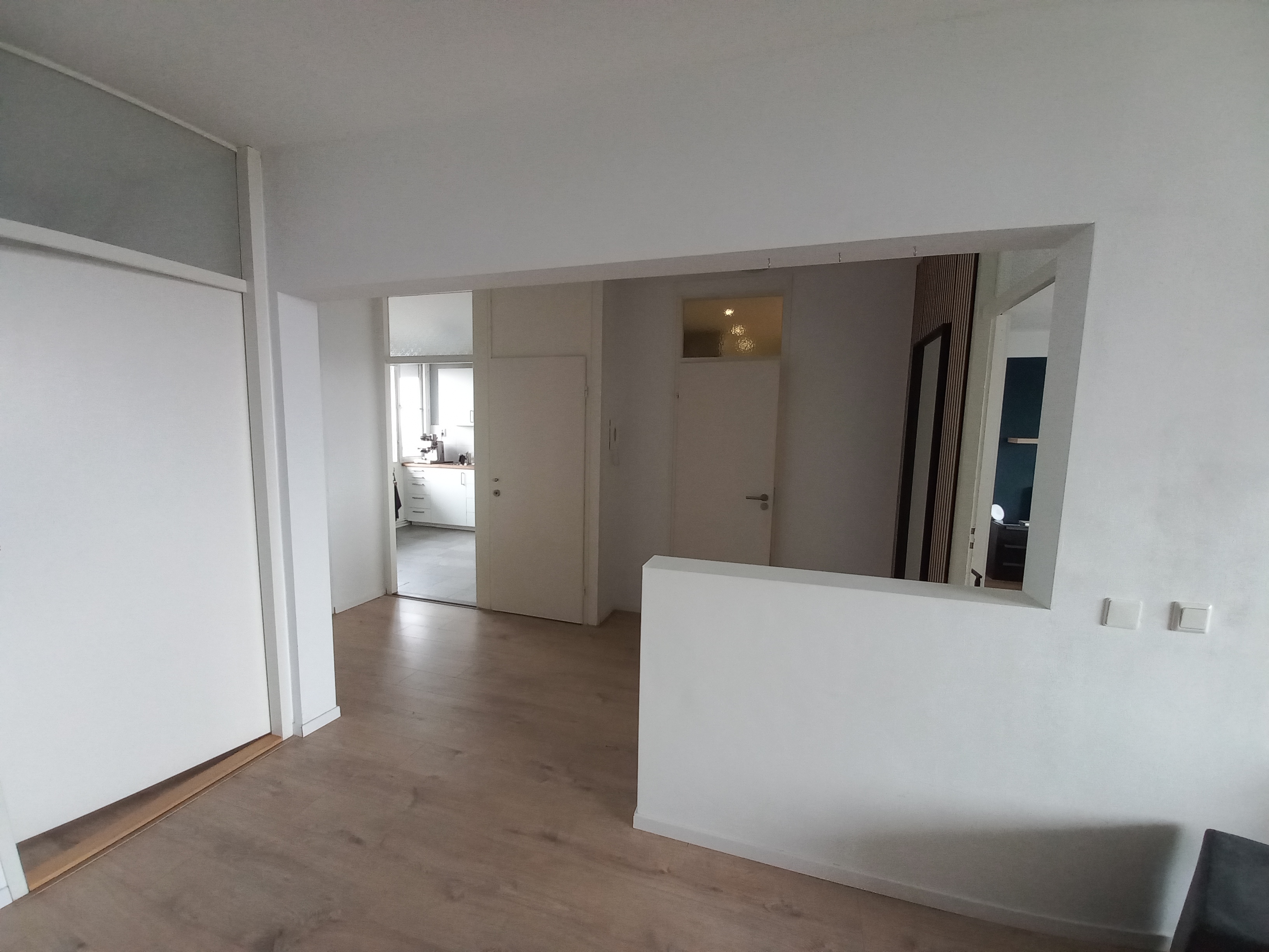 Indeling: Entree met meterkast, Overloop (+/- 2 x 4 m) met inpandige bergkast, Aan de linkerzijde gesloten keuken (+/- 9m2) met aanrecht, gasfornuis en afzuigkap. Tevens aansluitingen voor vaatwasser of wasmachine. Sfeervolle woonkamer (+/- 7.16 x 3.88 m) met vergezicht over o.a. Brunssum en Landgraaf. Van voormalige 2 slaapkamers is 1 slaapkamer(+/- 23 m2) gemaakt met roomdivider waardoor je een grote slaapkamer hebt met kast en ingebouwde boiler. Tevens met toegang tot het balkon. De betegelde badkamer voorzien van wastafel met spiegel en verlichting, douche, hangend toilet en wasmachine aansluiting. De 2e slaapkamer (+/- 19 m2) aan de galerij zijde voorzijde is ook voorzien van laminaat. Het instapklare appartement is voorzien van dubbelglas behoudens bovenluiken, rolluiken op zowel slaapkamers en keuken. Een hordeur naar het balkon en op diverse ramen. Zoals eerder gezegd is er een balkon over de hele breedte van het appartement. Aan het einde van de galerij is er tevens een ruime berging. Een modern appartement wat het bekijken de moeite waard is.
