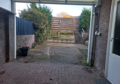 -Wasberging (3.00 x 2.00 m) met tegelvloer, aansluitingen witgoed en toegangsdeur naar de omsloten tuin met toegang tot prive parkeerplaats. Tuin met overkapping.